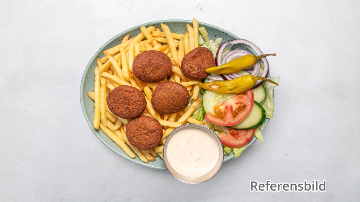 Före gräddning: tomatsås, ost, kebabkött och rödlök. Efter gräddning: tomater, isbergssallad, feferoni och kebabsås.