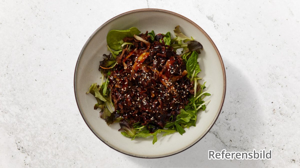 Wokad entrecôte med lök och purjolök i japansk sås.