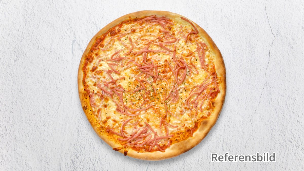 Inbakad. Pizza med fläskkött.
