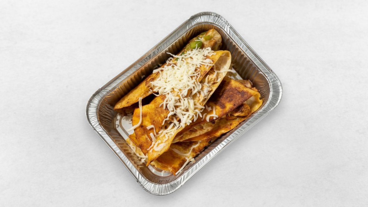 Serveras med stekt eller krispig kyckling, ris, ost, bönor, ruccola, salsa, picklad gurka, guacamole och chilimajo.