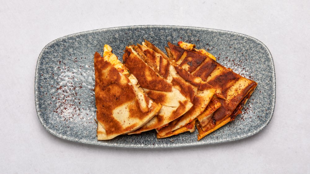Grillad oxfilé, lammfilé, kycklingfilé och oxfilé serveras med vitlökskräm.