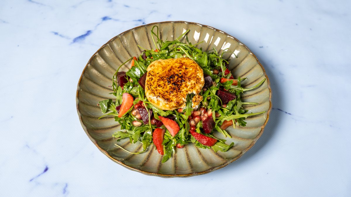 Rucola, beetroot, pomegranate, strawberry, goat cheese, olive oil balsamic vinaigrette