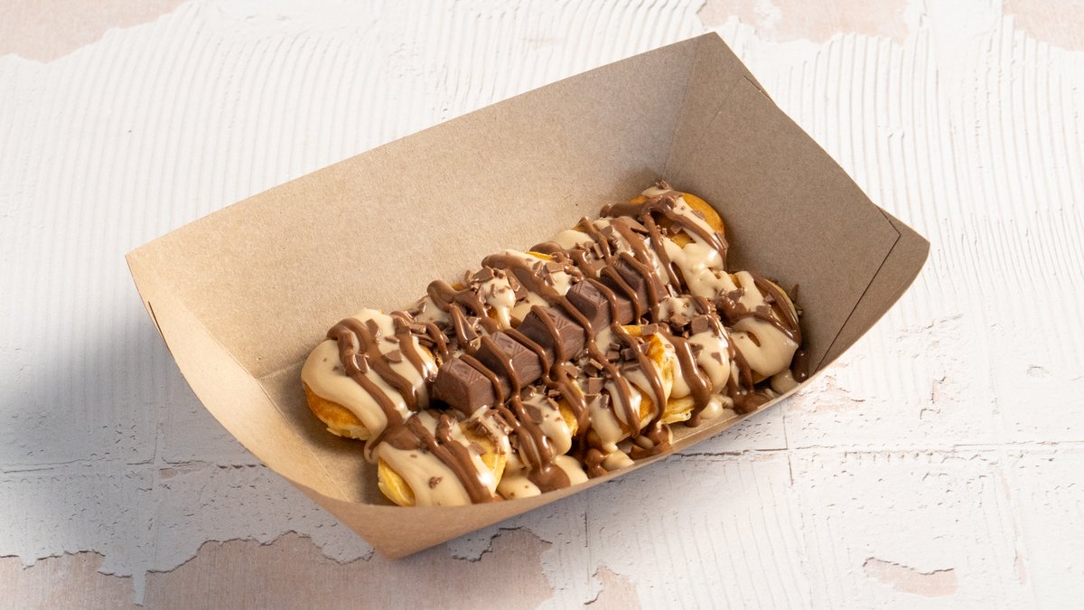 4 waffle sticks, broken into pieces, served with Nutella & white chocolate on the side.
