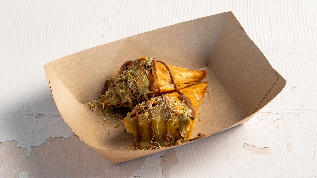 Fresh strawberries and brownies served with pistachio spread, crispy kadaifi, Nutella & white chocolate on the side.