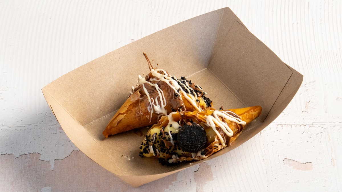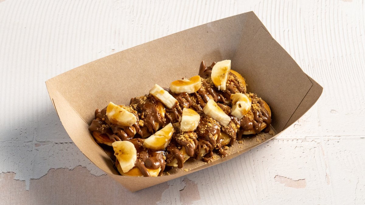 40 mini pancakes served with Nutella & white chocolate and crushed digestive biscuits.