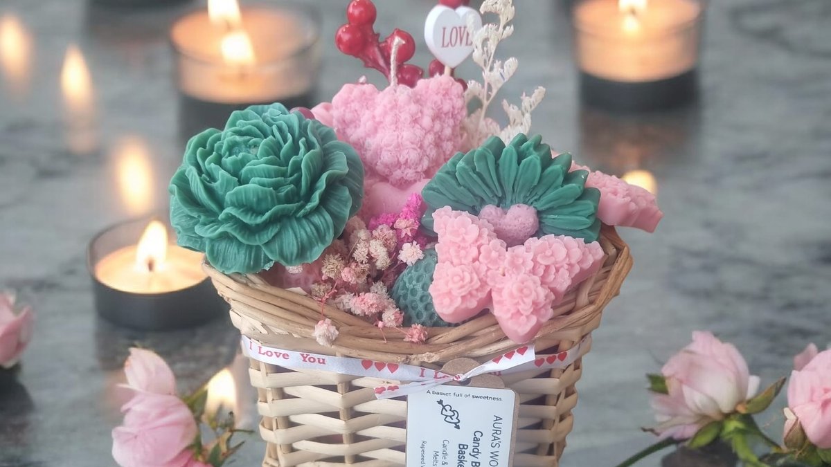🍬💖 Candy Bloom Basket – Candles & Wax Melts | Aura’s Workshop | Rapeseed Wax | Valentine’s Gift