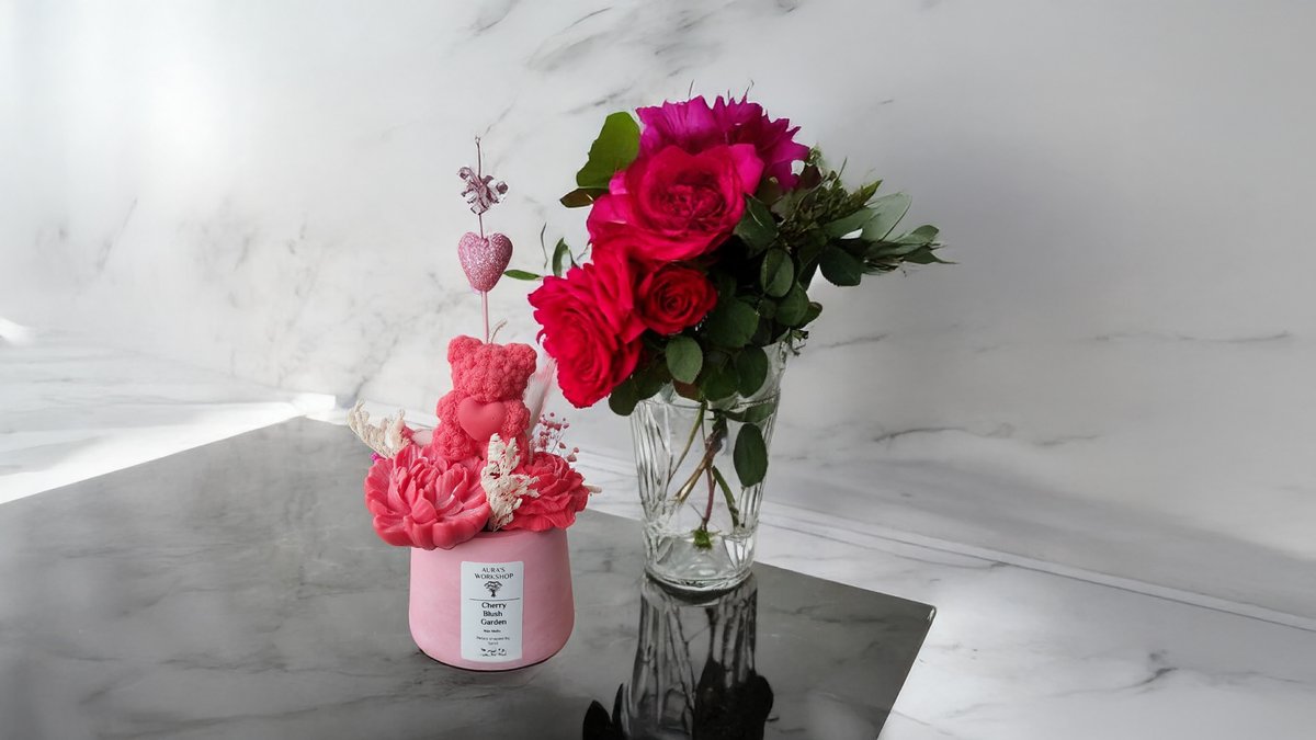 €28,99🍒🌸 Cherry Blush Garden Bouquet | Porcelain Pink Vase & Wax Melt Decoration | Valentine’s Edition
