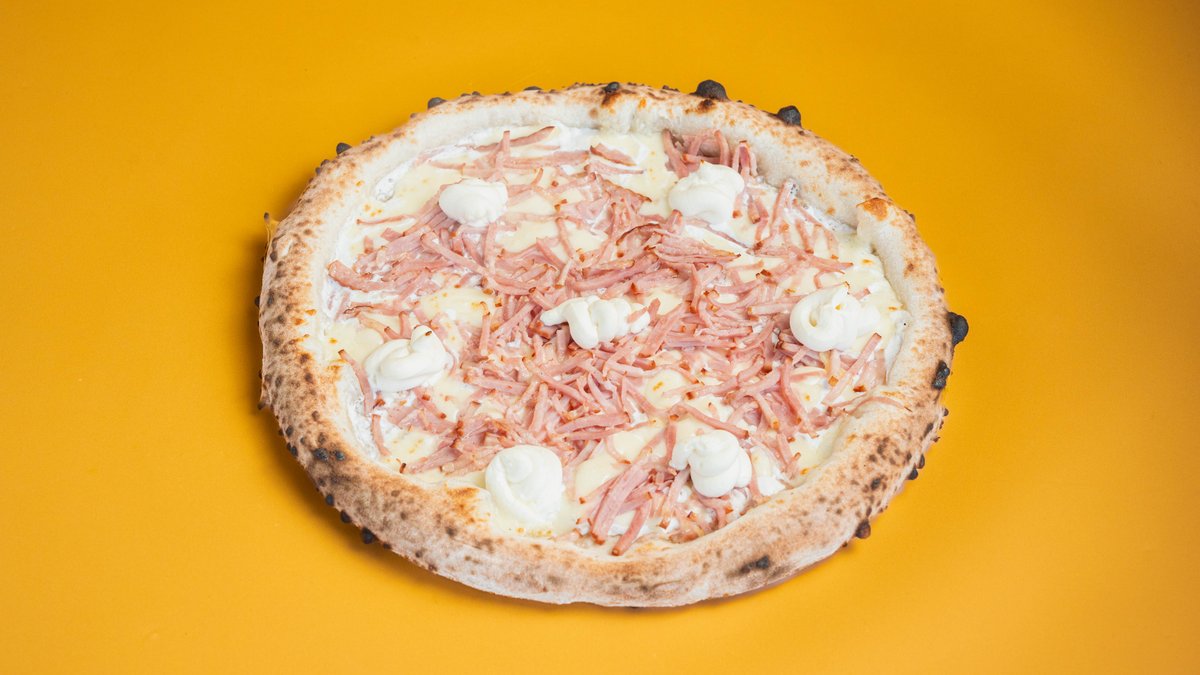 Fresh cream, fresca tomato sauce, ham, bacon, sriracha. Contains salt and pepper