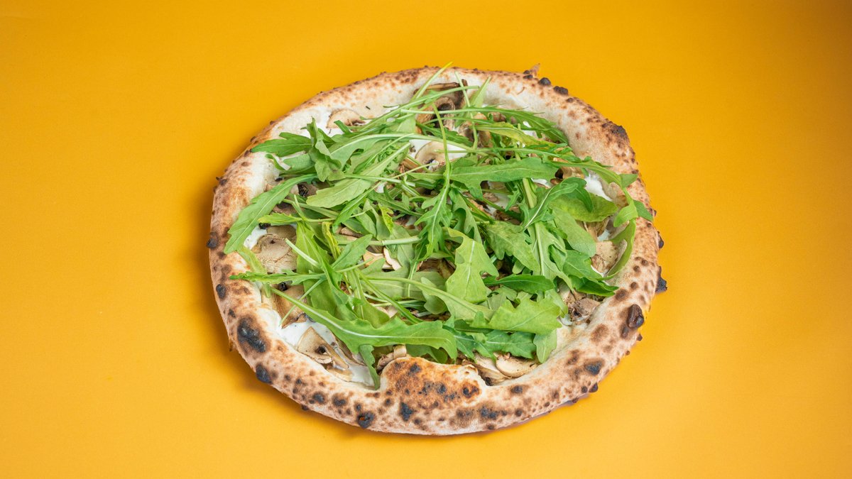 Tomato Sauce with mozzarella Cheese, arugula, cherry, tomatoes, parmesan