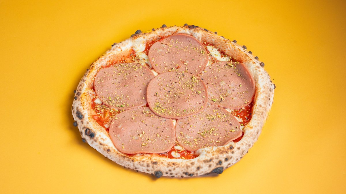 Tomato Sauce with mozzarella cheese. mortadella & pistachio