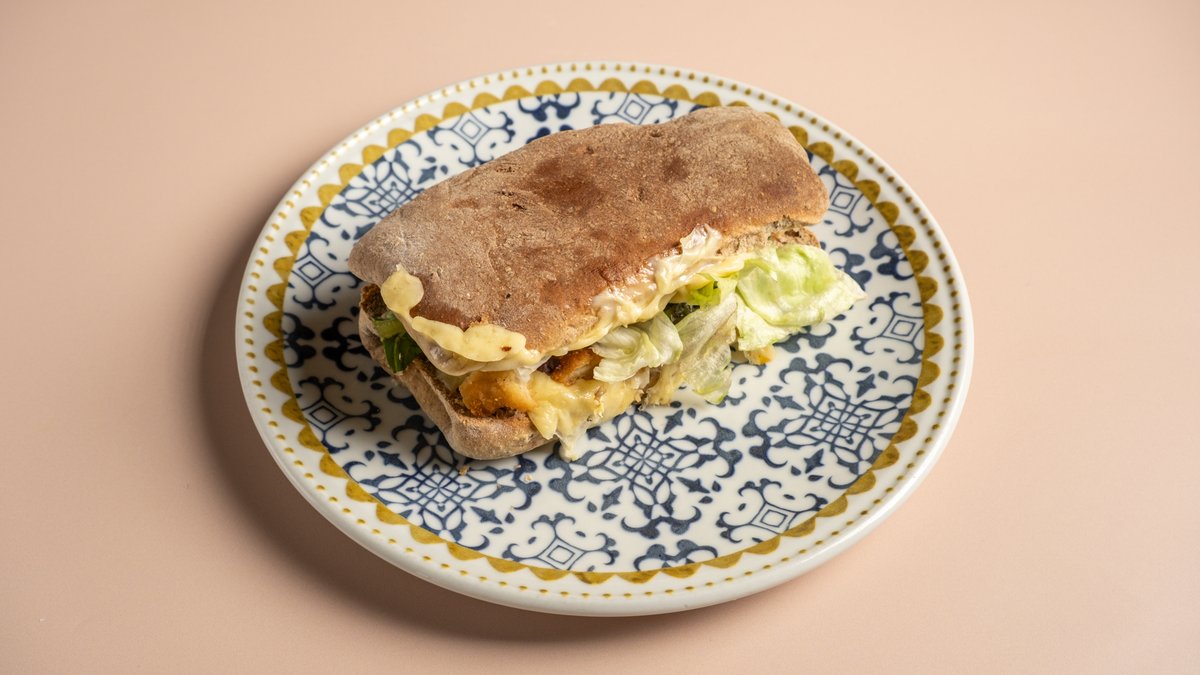 Breaded chicken, edam cheese, pickled cucumber, lettuce and smoked mayonnaise