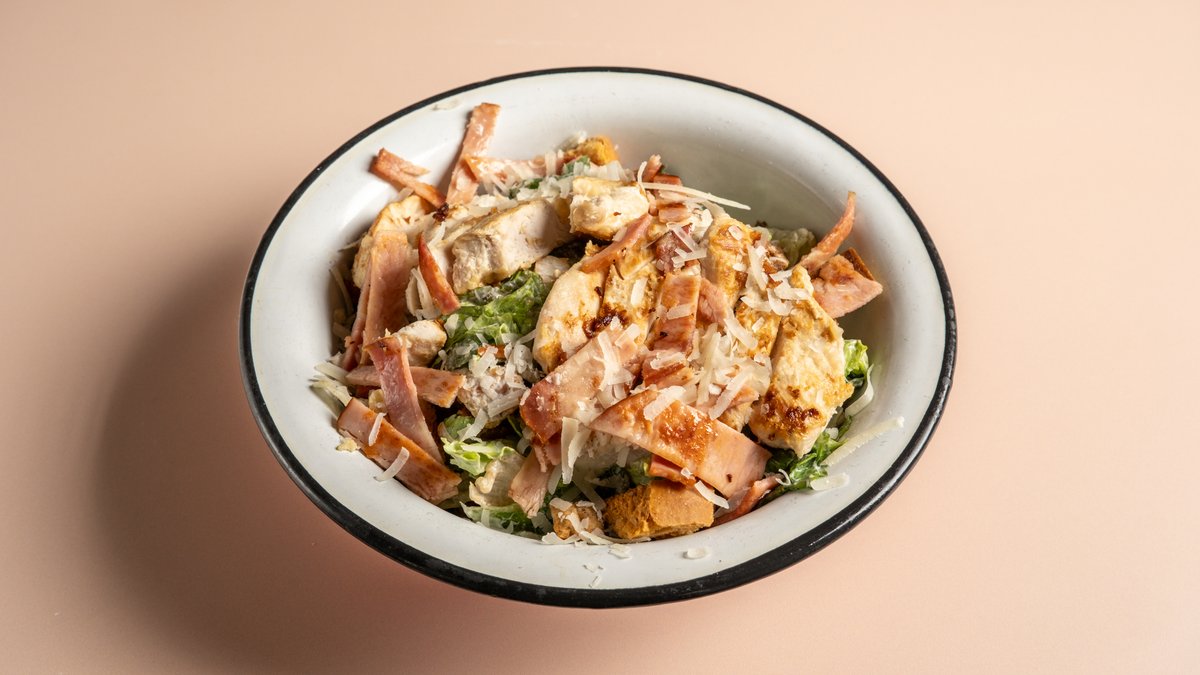with grilled chicken, lountza, croutons, parmesan and yogurt sauce