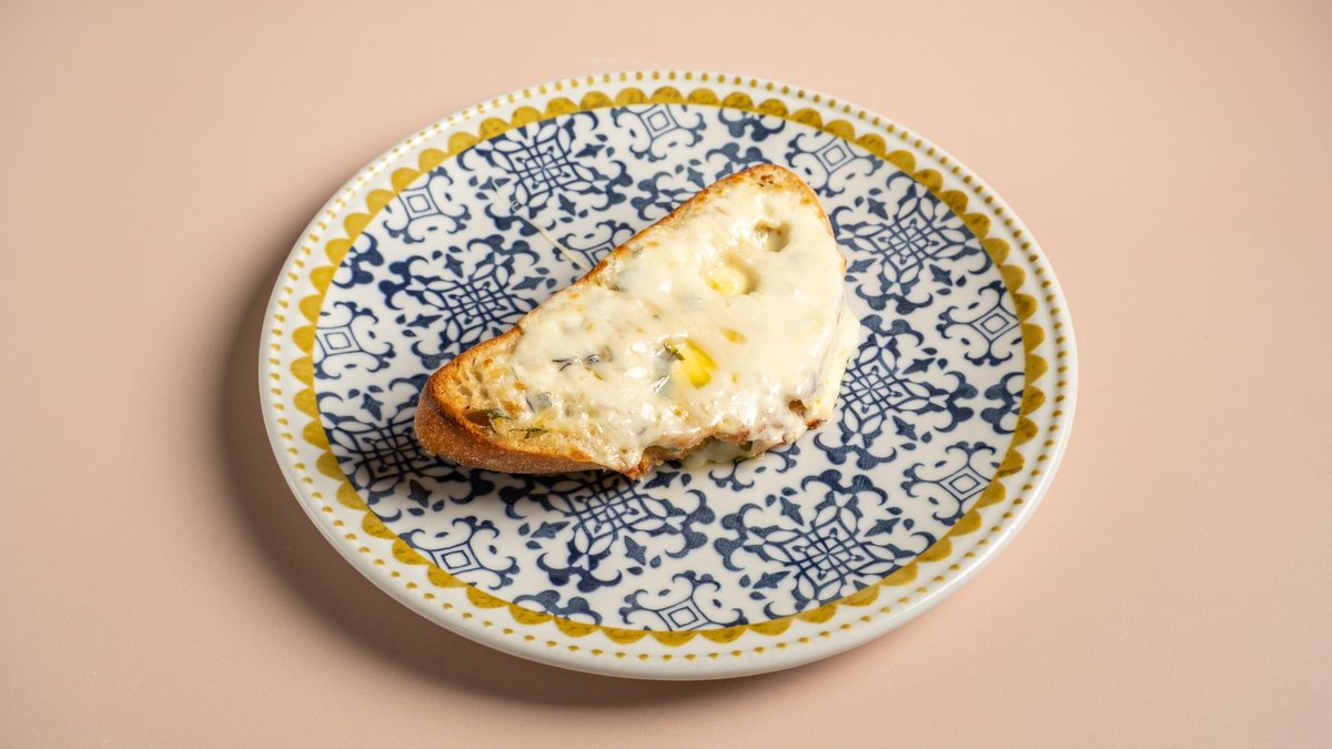 3 Pieces of toasted bread with garlic butter and mozzarella cooked in the pizza oven