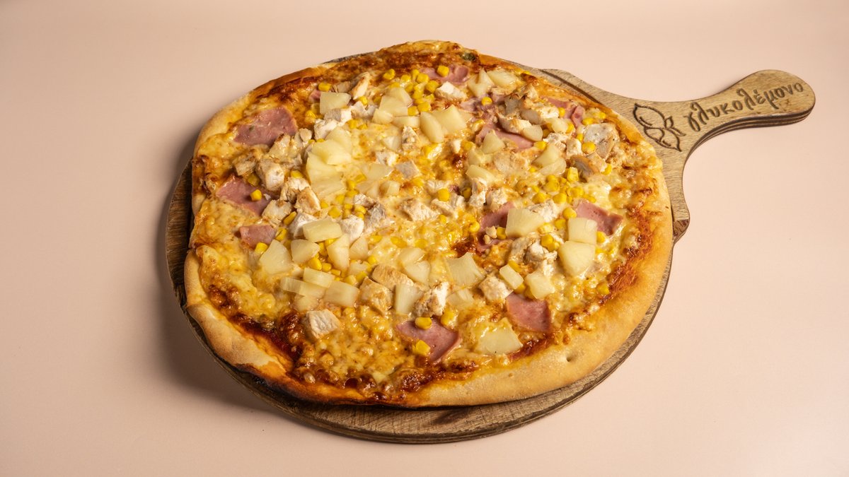 Edam cheese, sweetcorn, mushrooms, smoked turkey and onions