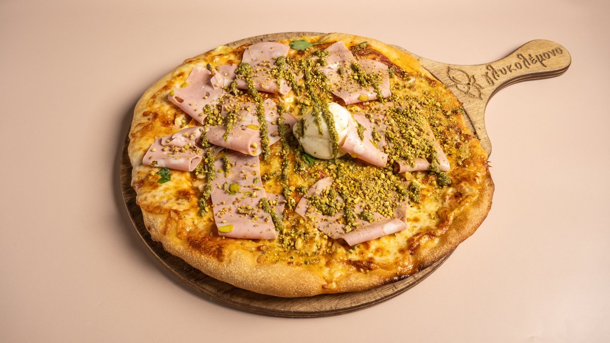 Mozzarella cheese, fresh burrata, basil pesto, mortadella and fresh pistachio