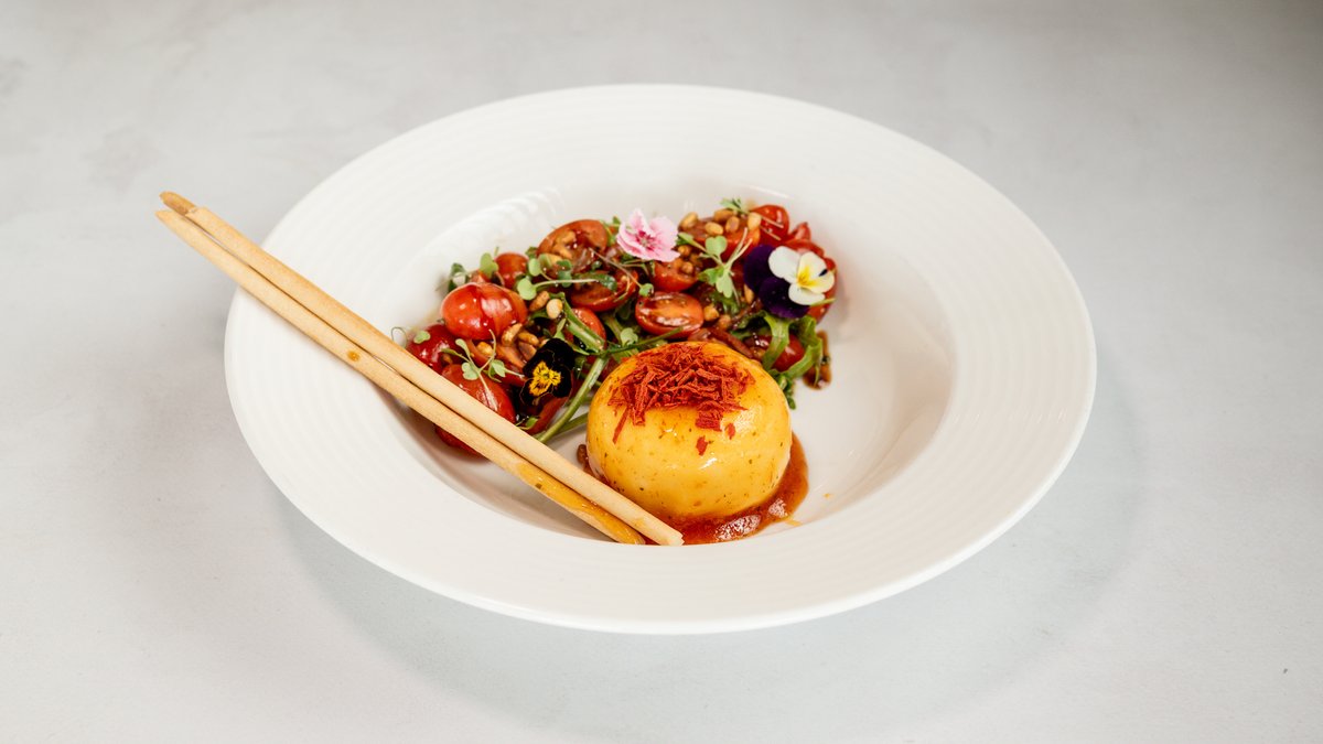 Tomatoes, arugula, pine nuts, sweet tomato jam