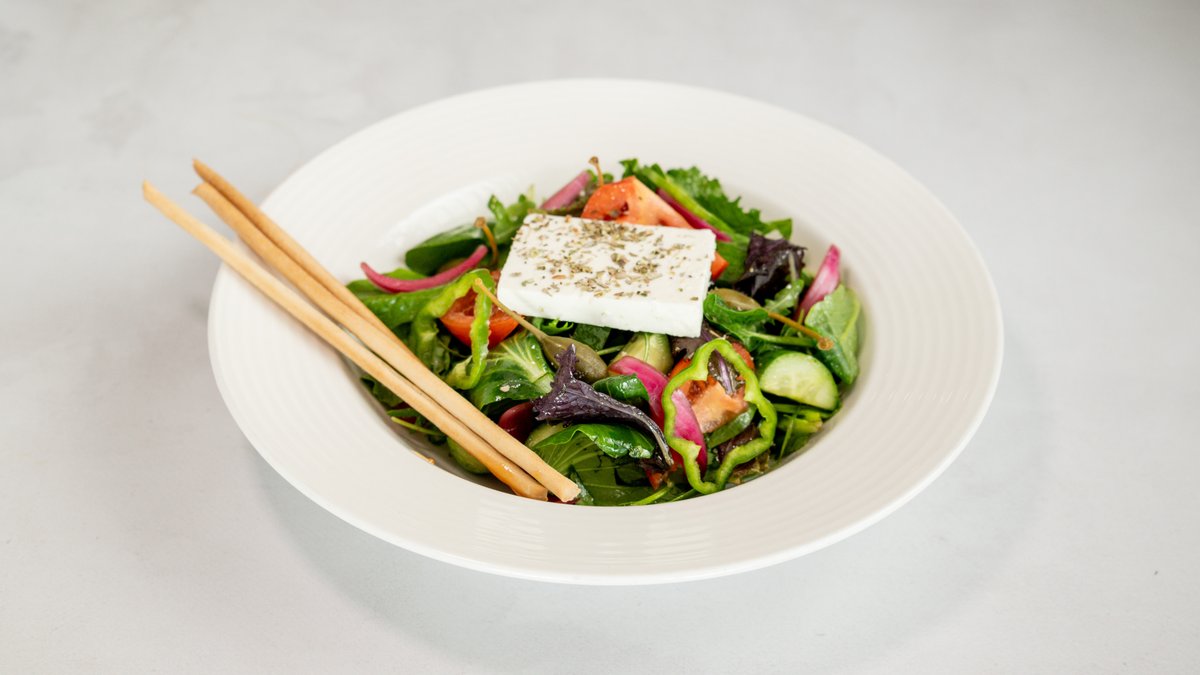 Cucumber, tomatoes, mixed greens, pickled red onion, olives, capers, feta cheese