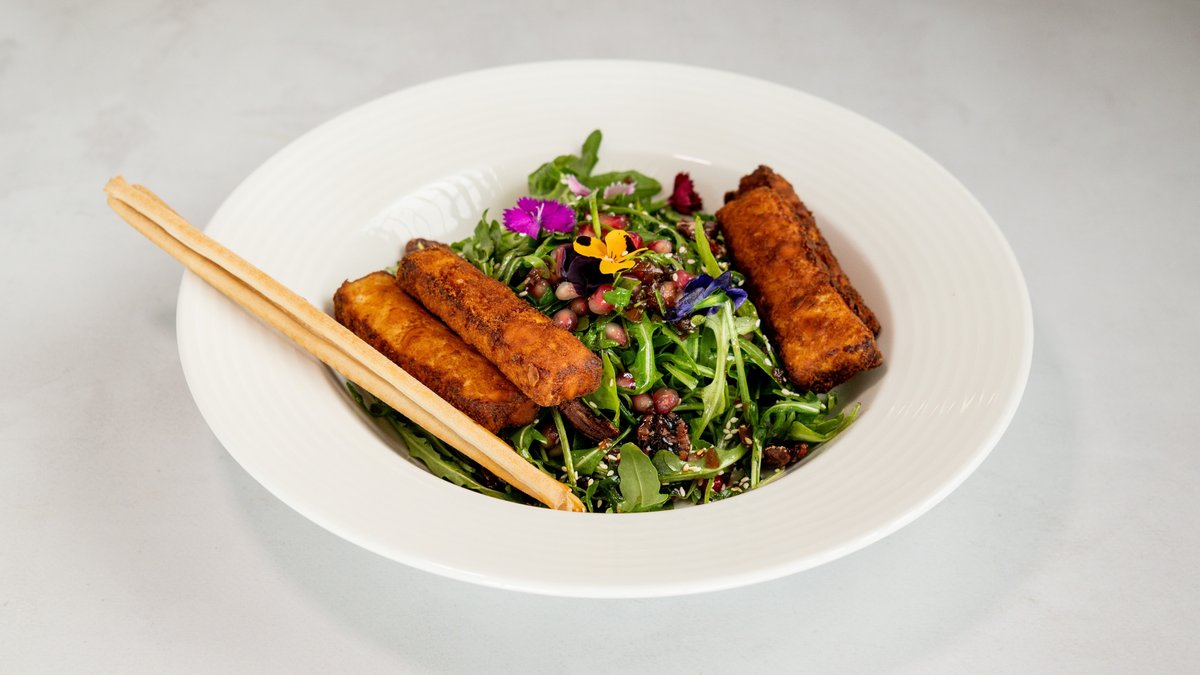 Almond crusted halloumi, pomegranate, sesame seeds, pecans, pomegranate and onion jam