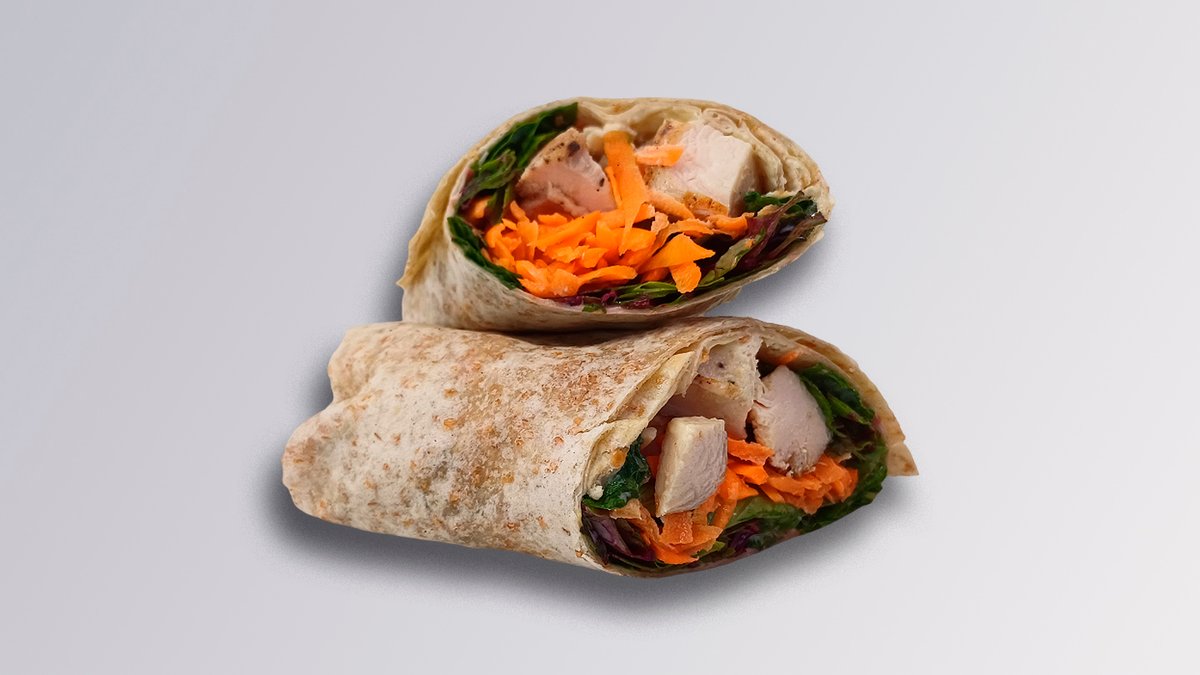Wholewheat wrap with chicken, lettuce, carrot and honey mustard sauce