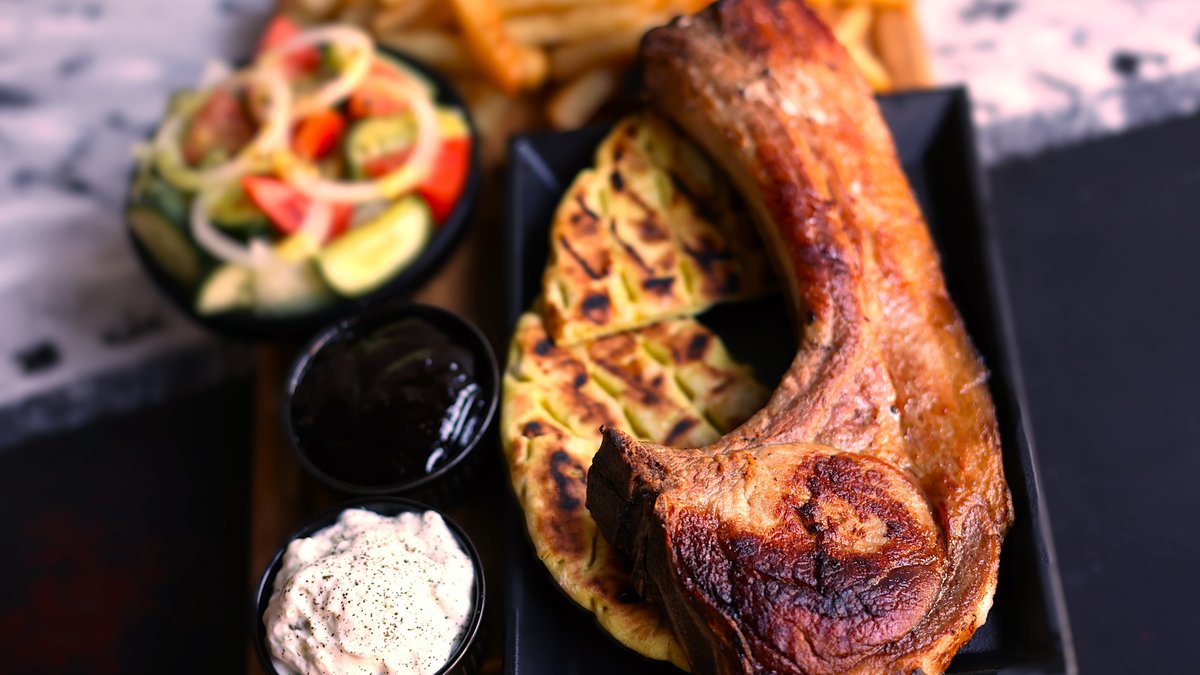 Salad, Fries, Pita, jack Daniel's sauce & tzatziki.