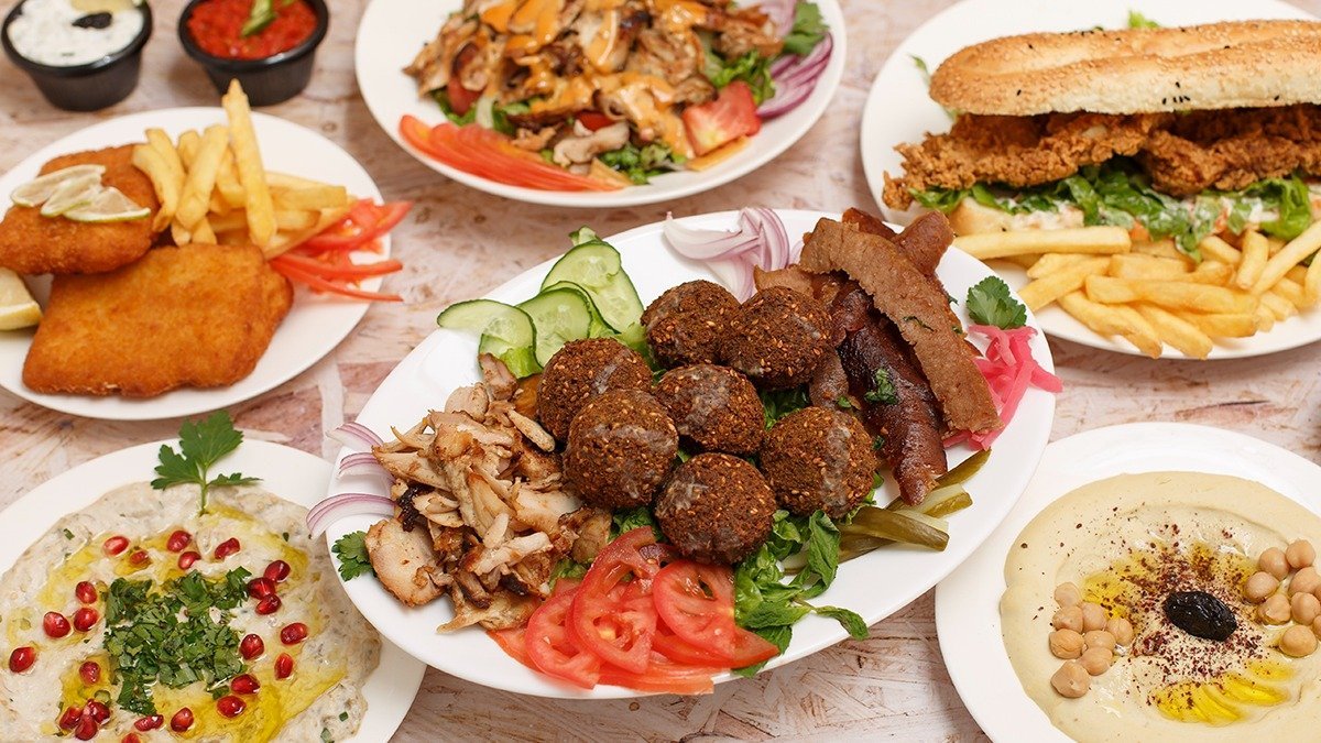 Delicious shawarma, kebab, and falafel with Arabic pita