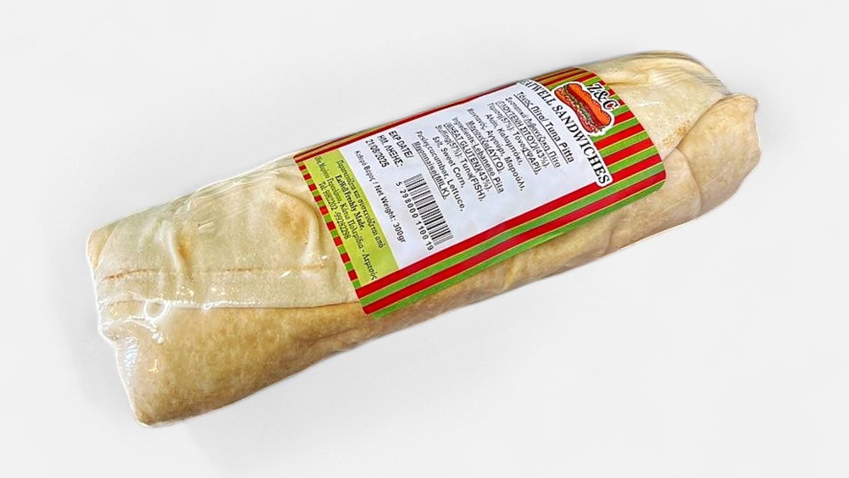 Ingedients: Lebanese Pitta Tuna Salt Sweet Corn Parsley Cucumber Lettuce Mayonnaise(milk)
