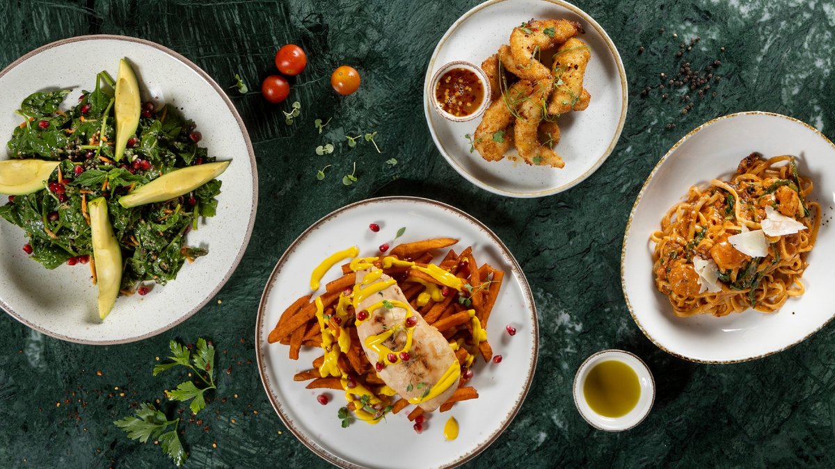 Mix leafy greens, cherry tomatoes, mozzarella balls, Parmesan, croutons, crispy bacon, crispy chicken fillet and creamy ranch dressing