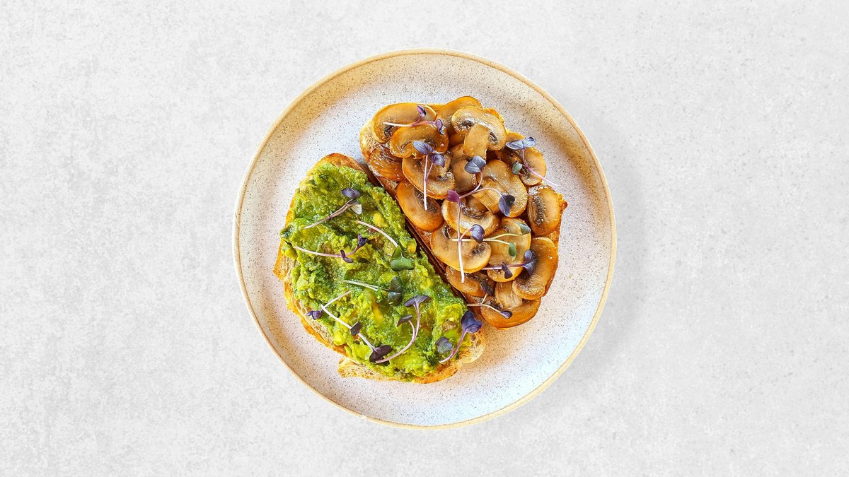 Sauteed mushrooms, guacamole, served on vegan sourdough toast