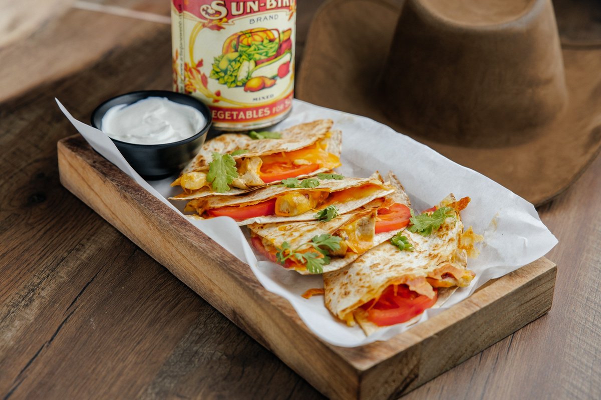 Bell pepper, corn, beans, onion, mushrooms, mixed cheese, cheese sauce. Served with guacamole and sour cream on the side. Vegeterian option.