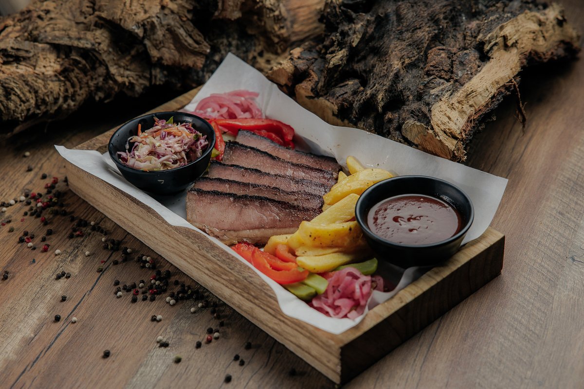 The Smoked Brisket, Smoked Chicken Wings, Pork Spare Ribs - all meat slow smoked in smoking machine. Served with tortillas mac & cheese, jalapeno, pickles and BBQ sauce.
