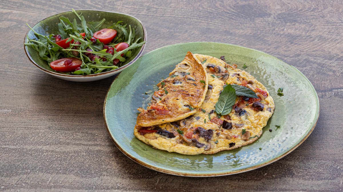 3 Αυγά, μανιτάρια, ελιές, ντομάτα και φρέσκος δυόσμος