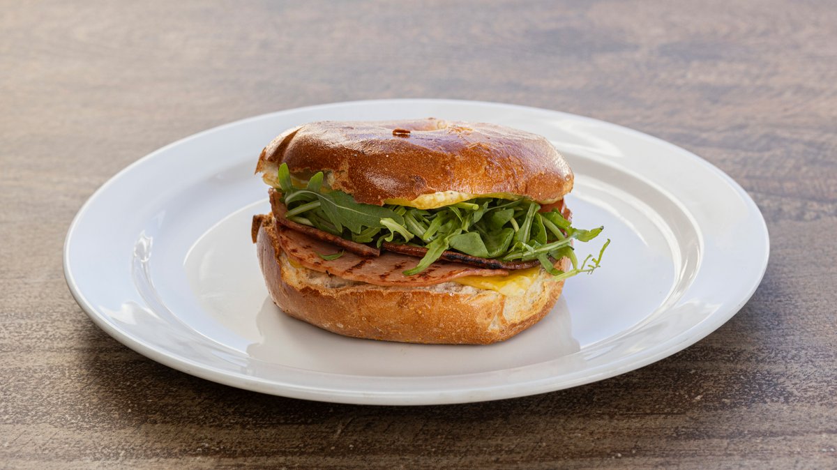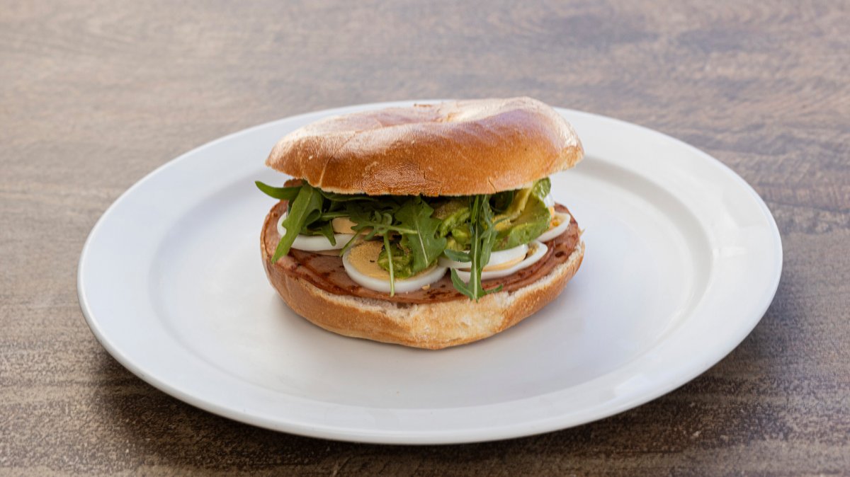 Μπέικον, λούντζα, τυρί, μπιφτέκι τηγανητό αυγό, μαρούλι, ντομάτα και απαλή μαγιονέζα, σερβίρεται με σαλάτα ή φρέσκες πατάτες