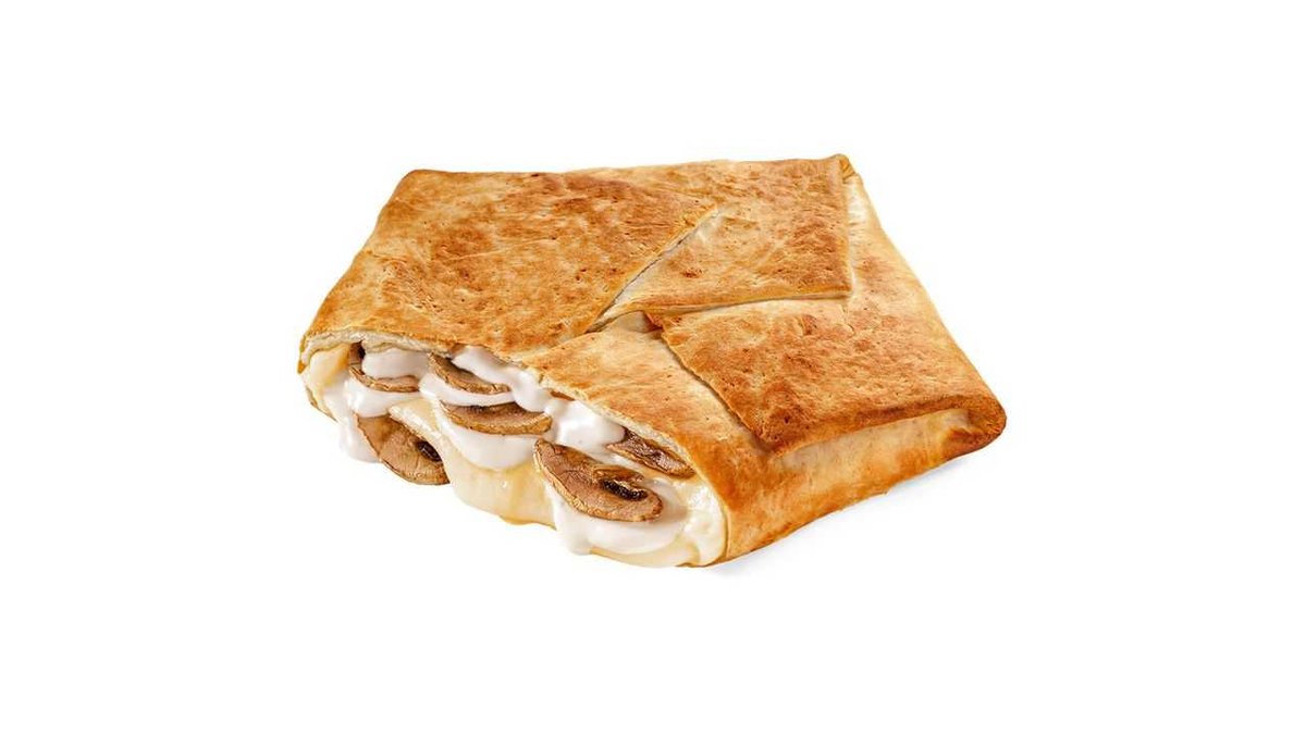 Tortilla snack with garlic sauce, mozzarella and mushrooms