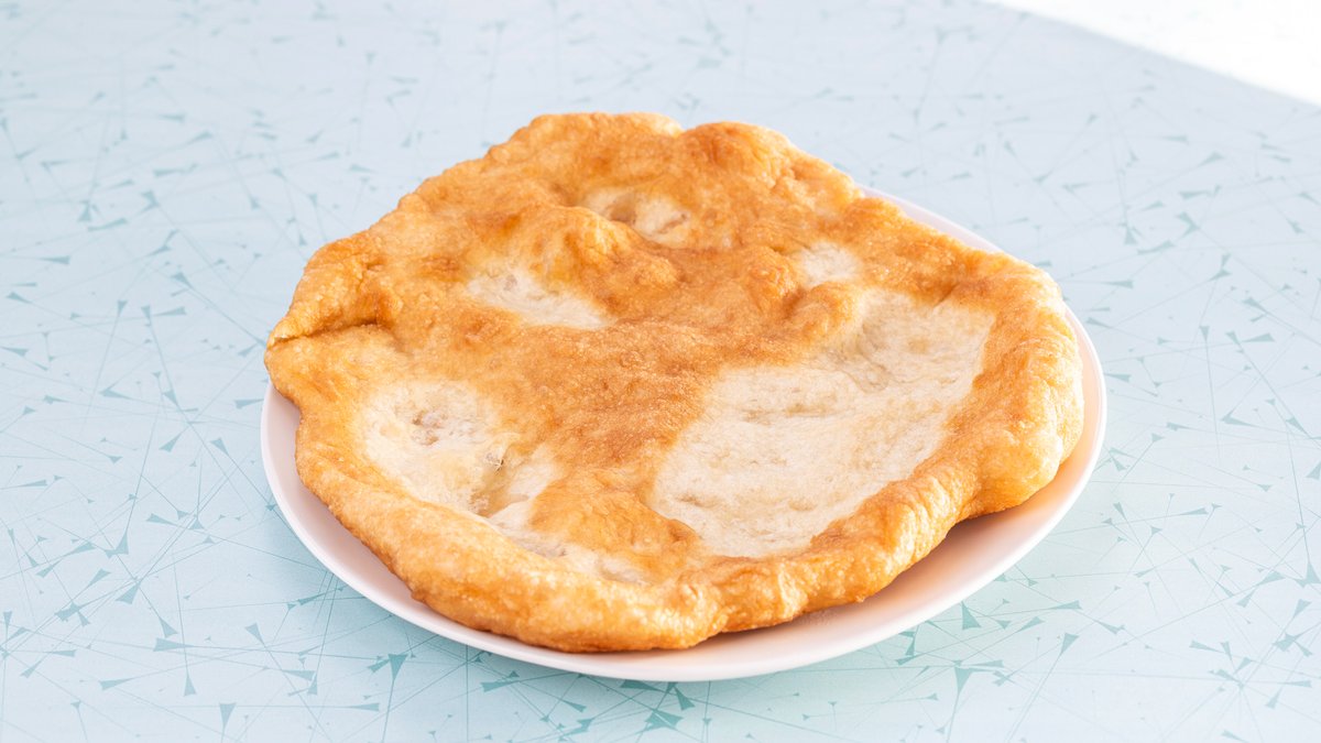 Langos with sour cabbage and bacon.