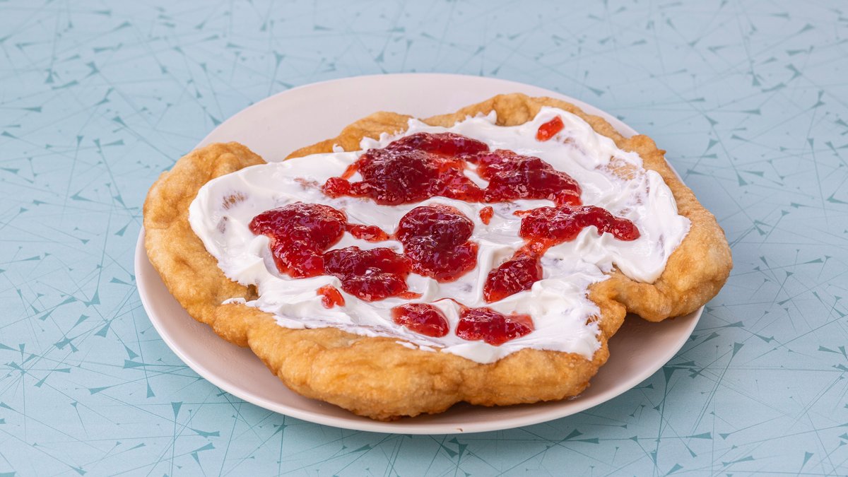 Langos With Yogurt And Strawberry Jam