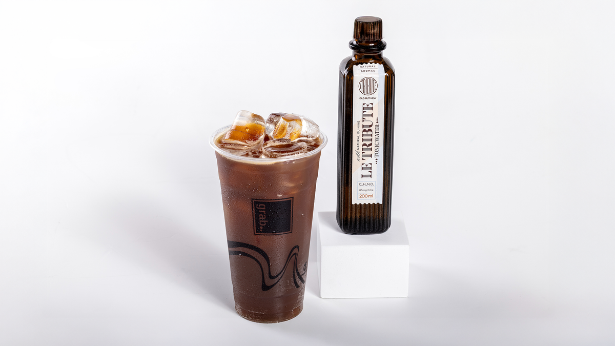 Served in a breathtakingly oversized cup, holding over half a litre of Dammann Frères green tea for an iced infusion, almond & wild cherry soda, orange, lime