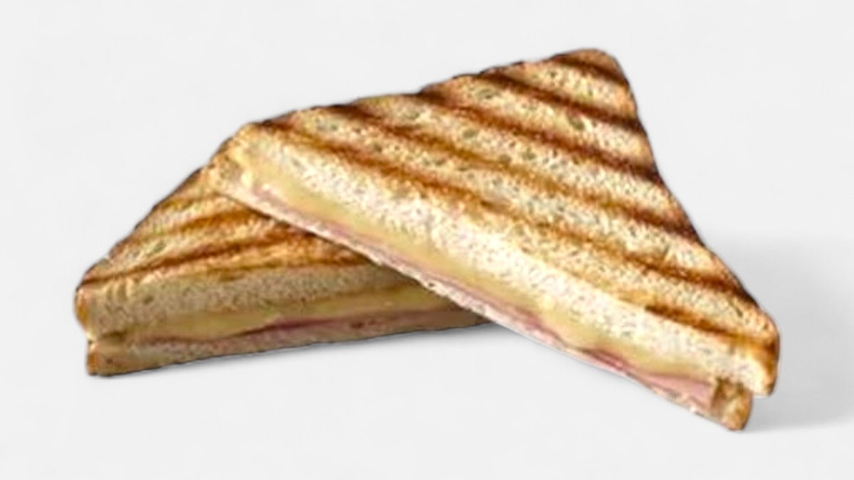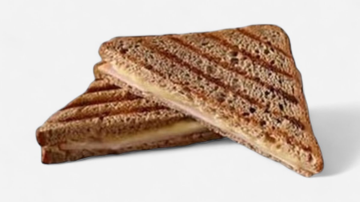 Τυρί edam, μπέικον, ζαμπόν, ντομάτα, μαρούλι, ντρέσινγκ μαγιονέζας. Σερβίρεται με τηγανιτές πατάτες