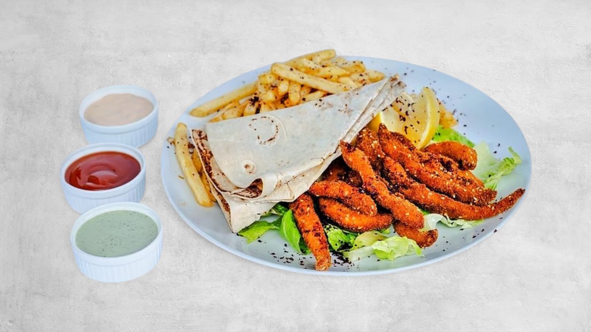 120g kafta in lebanese wrap, tomato, pickles and mayo served with fries and drink of choice