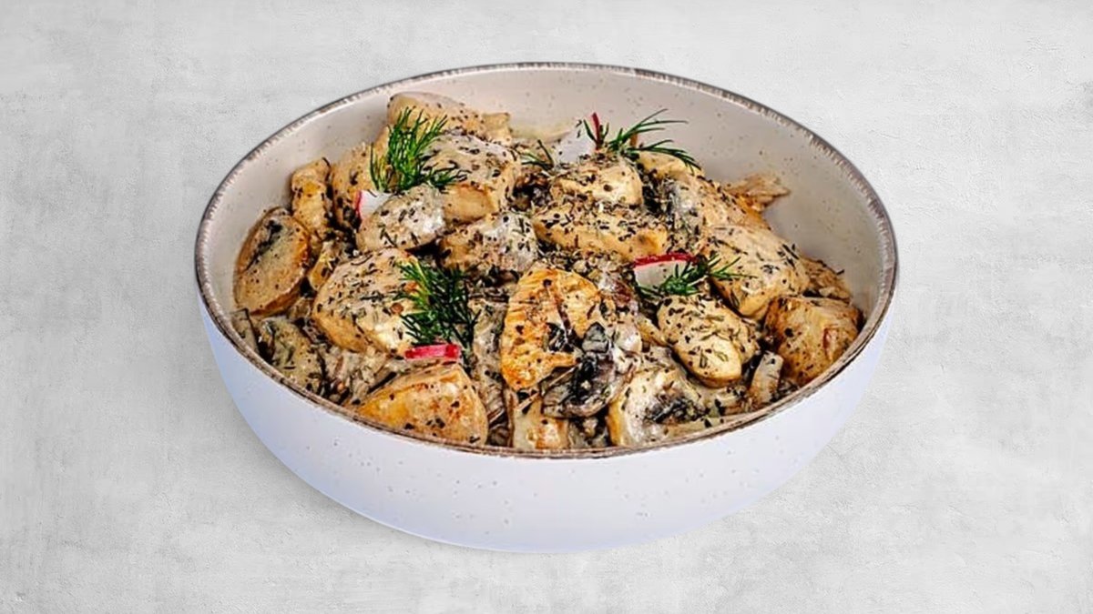 Chicken thigh, with minced meat and rice. Optional: yogurt or side salad.