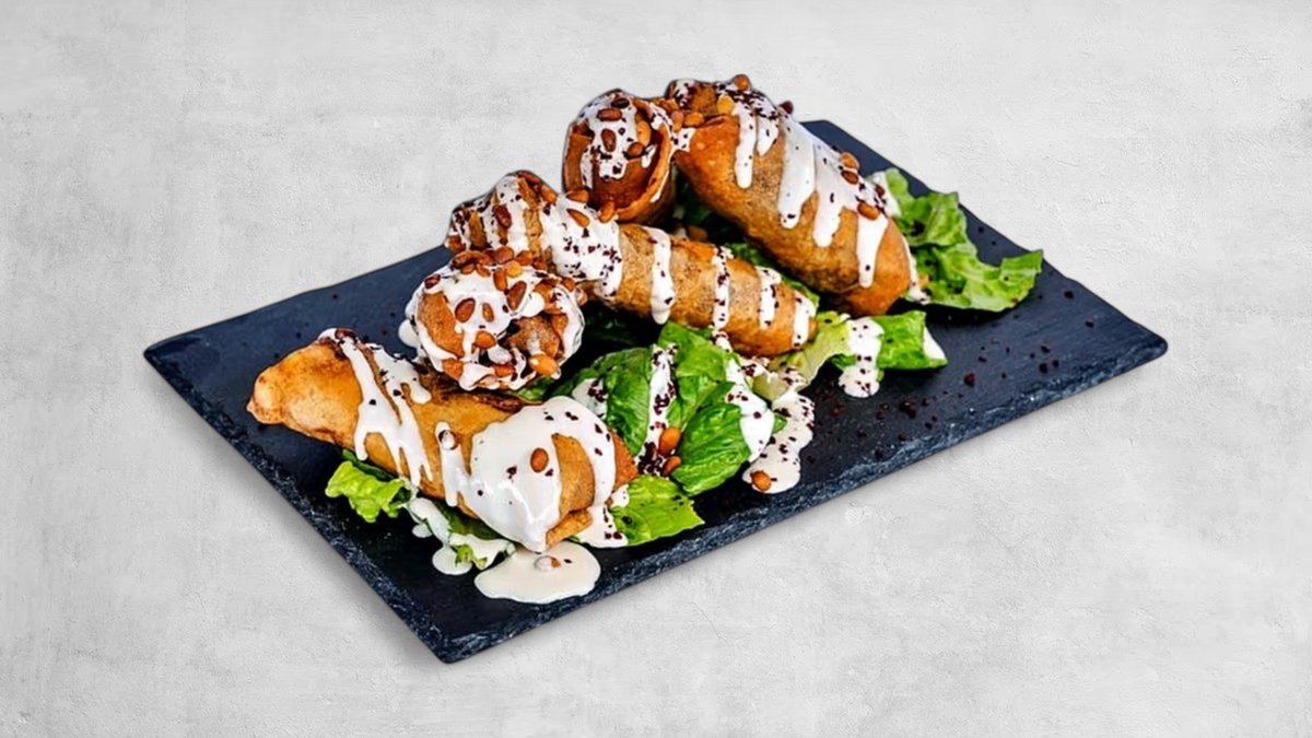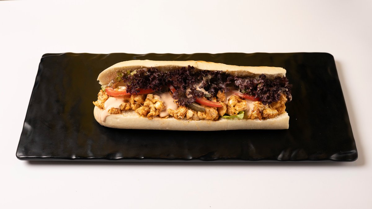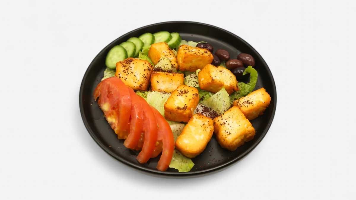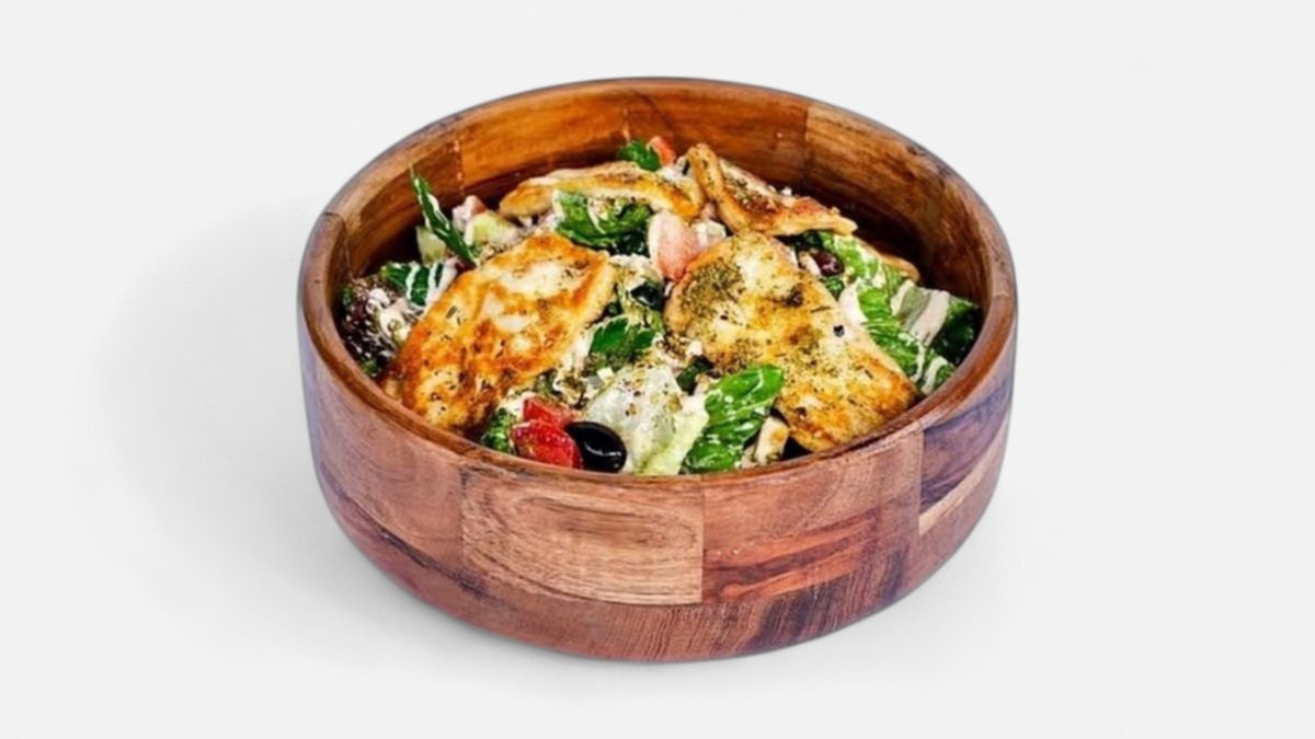 Grilled halloumi, lettuce, tomatoes, cucumber, onions, black olives, zaatar, sumac, 1000 island sauce.