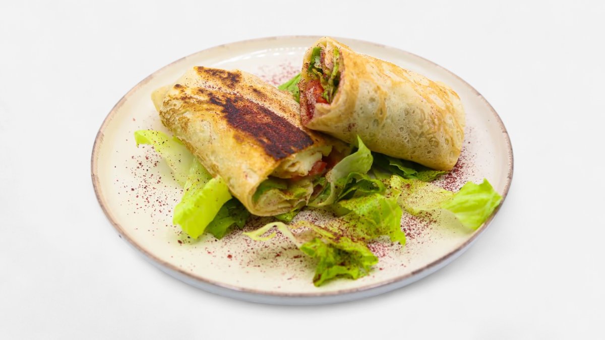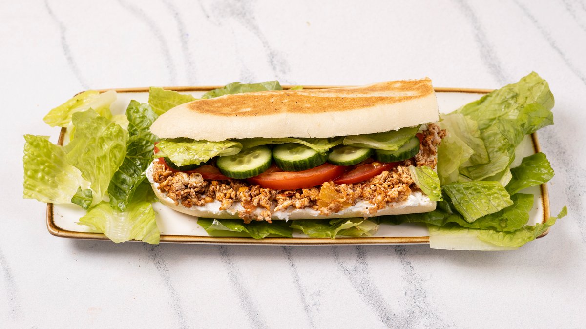 Haloumi, tomatoes , cucumber , lettuce in lebanese bread
