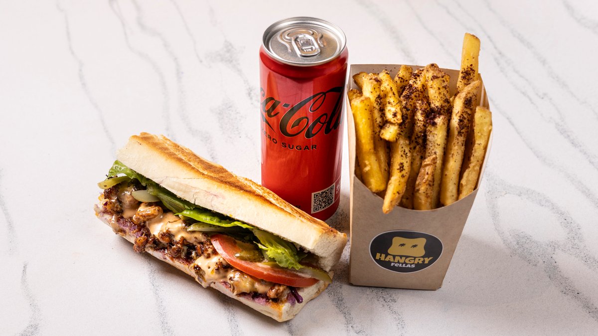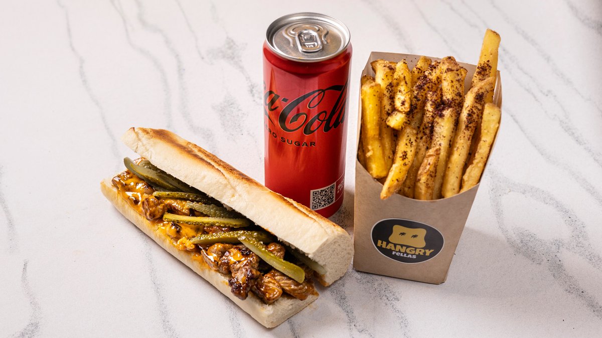 Philly Cheese Sandwich, sided with fries and drink of choice