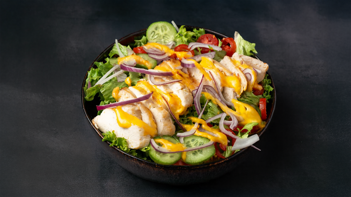 Green Lolloroso, tomatoes, cucumber, and finely sliced red onions tossed in our homemade low‑calorie honey mustard sauce, served with 170 g of tender steamed chicken for a light and satisfying dish. -------------------------------------------------------------------- Calories : 350 Protein : 51 g Carbs : 14 g