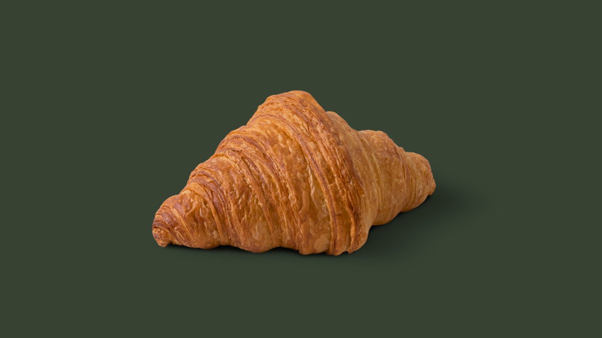 A Classic Butter Croissant With Flaky Top And Soft Layers Inside.