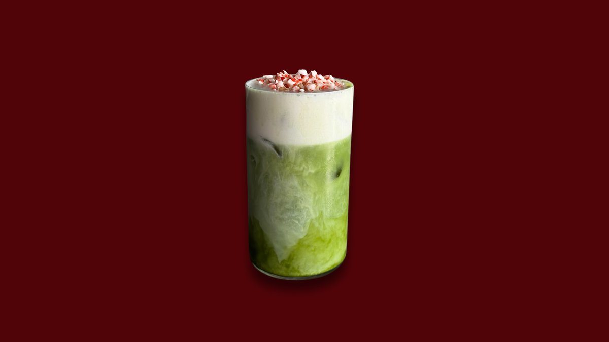 Our signature Candy Cane Matcha is back! Notes of peppermint and white chocolate topped with our signature matcha. Contains Dairy.