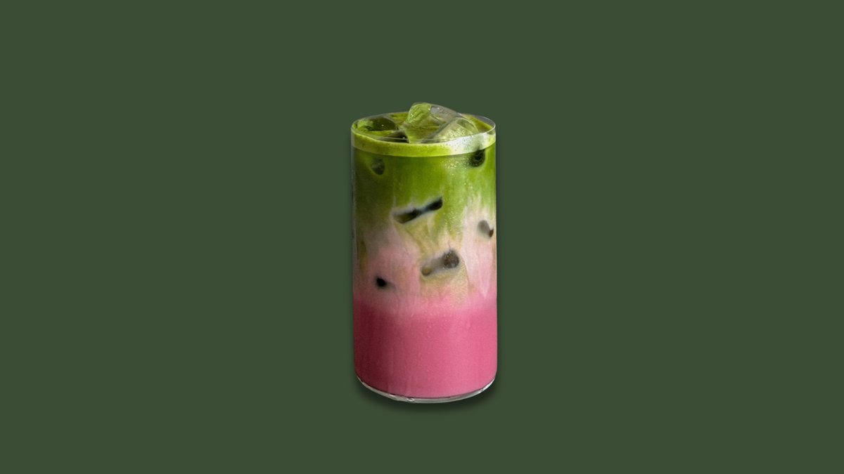 Signature Pink Matcha With Strawberry Blend And Oatmilk, Topped With Ceremonial-Grade Matcha. Separation is a natural process that may occur during delivery.
