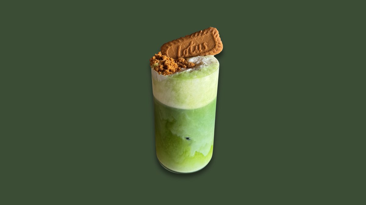 Our famous biscoff matcha, now available on wolt! Topped with biscoff cream top and biscoff cookie. A sweet treat! Separation is a natural process that may occur during delivery.