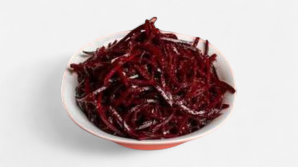With pickled carrot salad or red beetroot salad, mayonnaise and ketchup