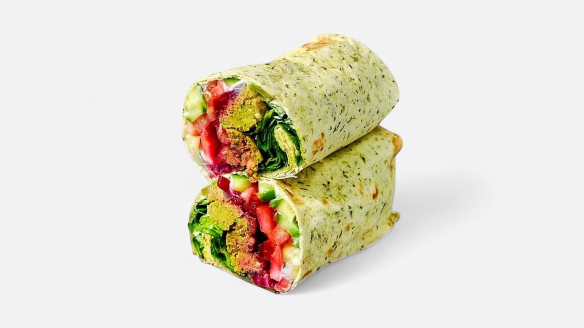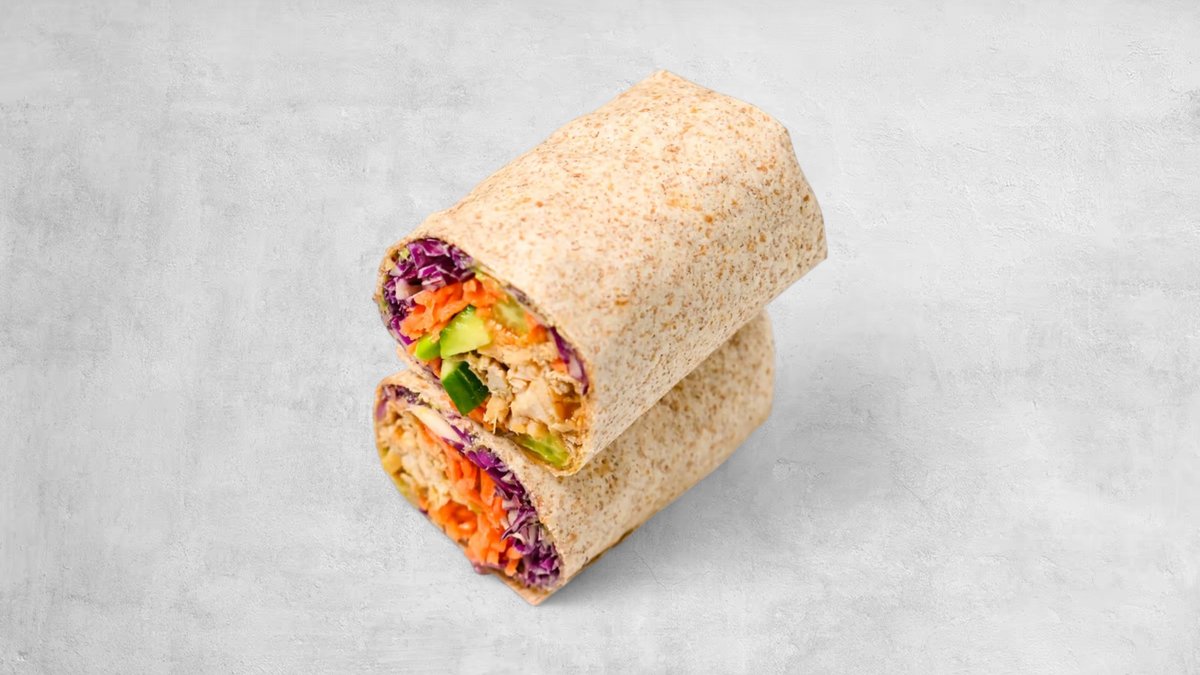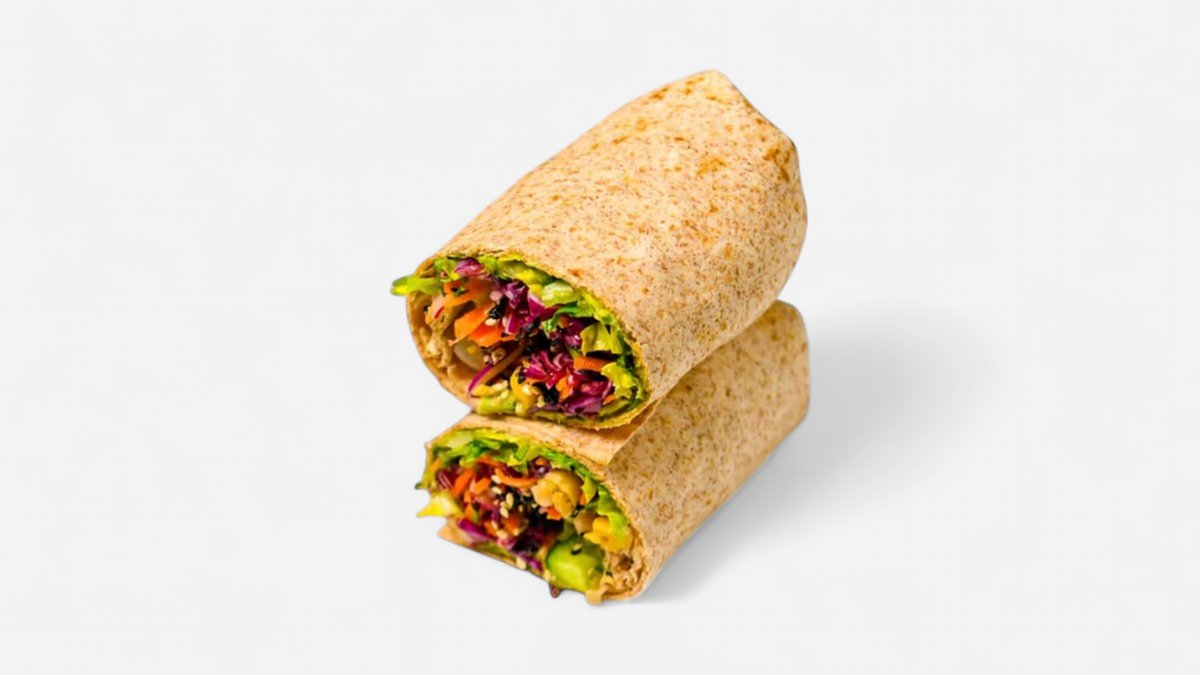 Tortilla of your choice – whole wheat classic or tomato , smashed avocado, lettuce, marinated red cabbage & carrot slaw ,chickpeas, cucumber, sesame seeds. 🌱 VEGAN Nutritional Value (per wrap): • Calories: 451 kcal • Protein: 14.2 g • Carbohydrates: 66.1 g • Fats: 15.3 g • Fiber: 10.9 g. *vegan