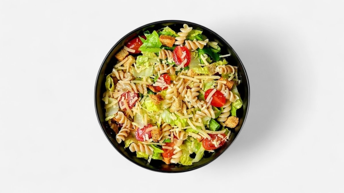 Ingredients: Fresh lettuce, whole grain croutons, cherry tomatoes, parmesan cheese, whole wheat pasta. Nutritional Value (per serving): • Calories: 418 kcal • Protein: 23.8 g • Carbohydrates: 52.8 g • Fats: 12.5 g • Fiber: 9.0 g ✅ Balanced carbs – Whole wheat pasta provides steady energy release. ✅ Rich in protein – Parmesan cheese supports muscle maintenance. ✅ Light & flavorful – Crisp lettuce and juicy cherry tomatoes add freshness. ✅ Satisfyingly crunchy – Oven-baked croutons bring a perfect crunch. 📌 Want to level up your protein intake? Add grilled chicken, shrimp, or salmon for an extra boost!